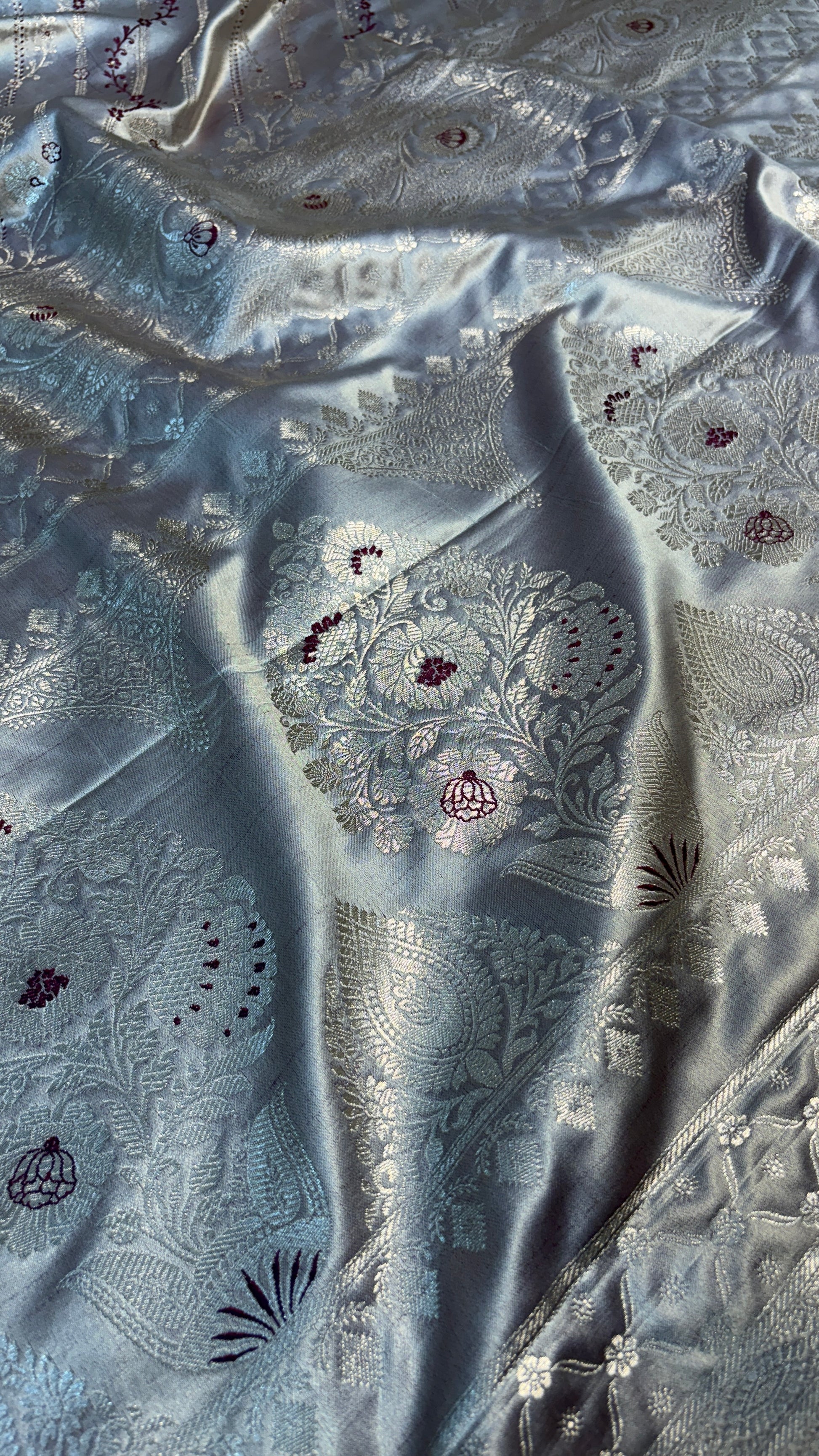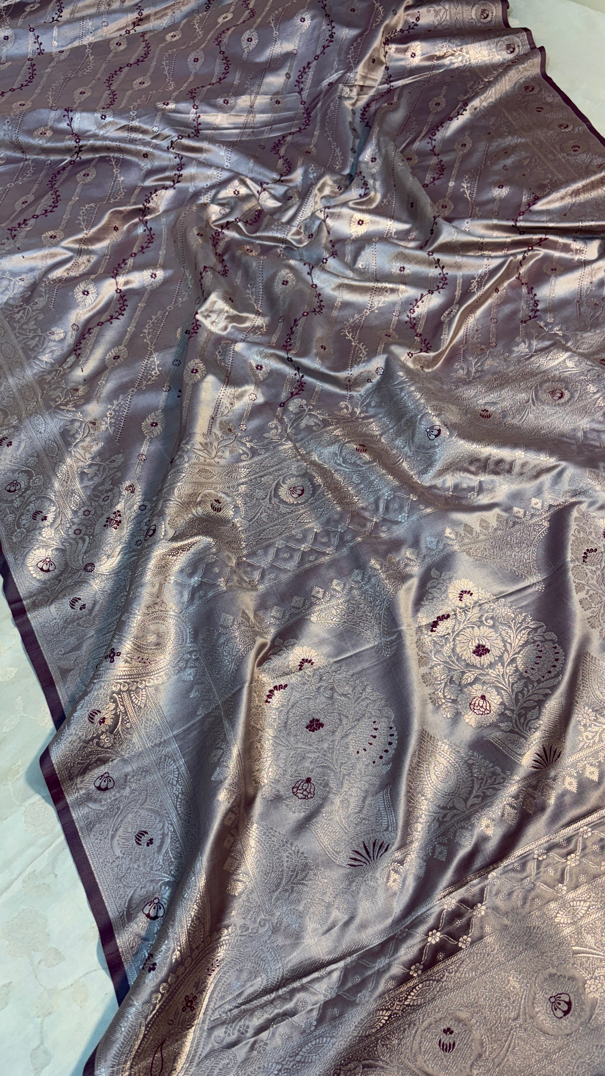 Dark Mauve Banarasi Satin Katan Silk Saree